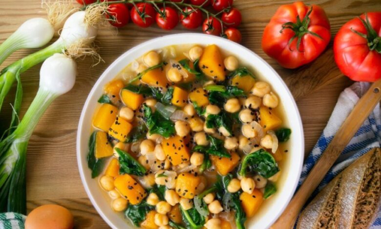 3. Ensopado de grão-de-bico com abóbora e espinafre