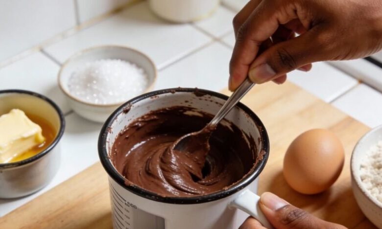Brownie de caneca rápido: úmido em 1 minuto no micro-ondas