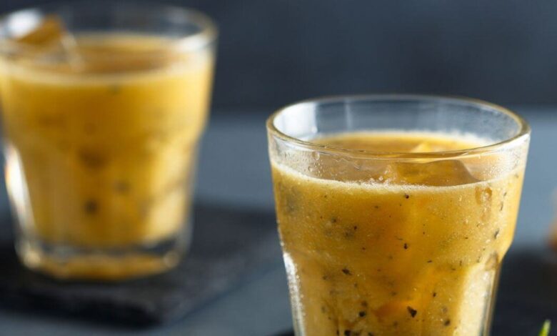 4. Maracujá com gengibre – Polpa de 2 maracujás, 500 ml de água e 1 c.s. de gengibre. Bata, coe e sirva gelado.