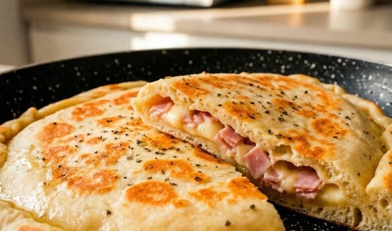Torta de frigideira: lanche quentinho pronto em 15 minutos é a solução para quem busca rapidez sem abrir mão de sabor. Cozida diretamente no fogo baixo e com a frigideira tampada, a receita dispensa forno, cresce graças ao fermento químico e suja pouquíssima louça.